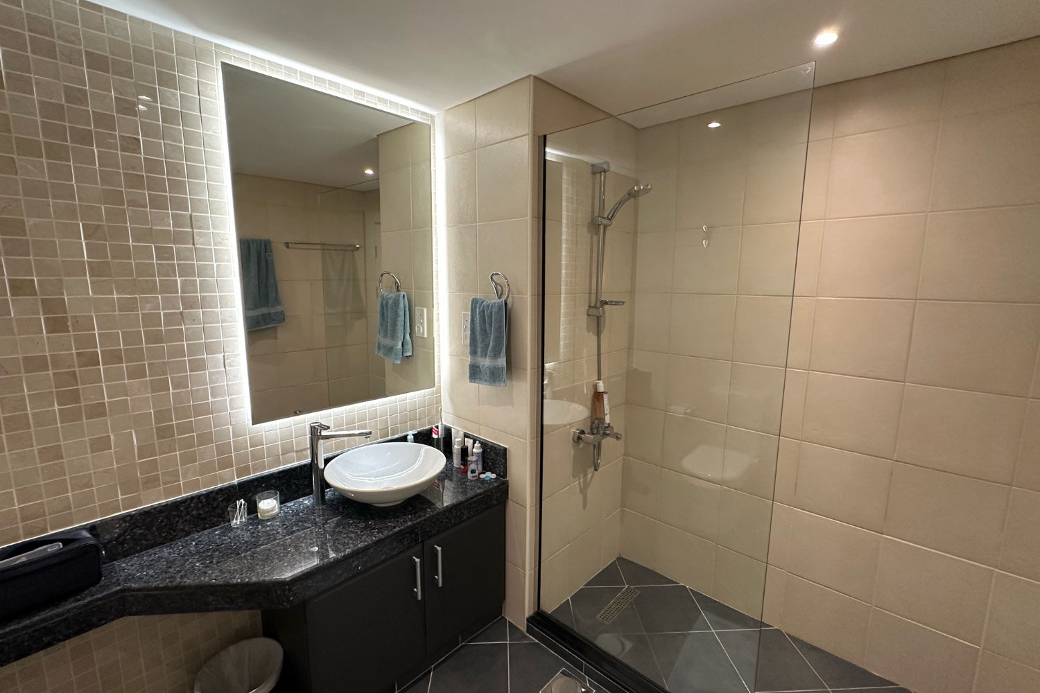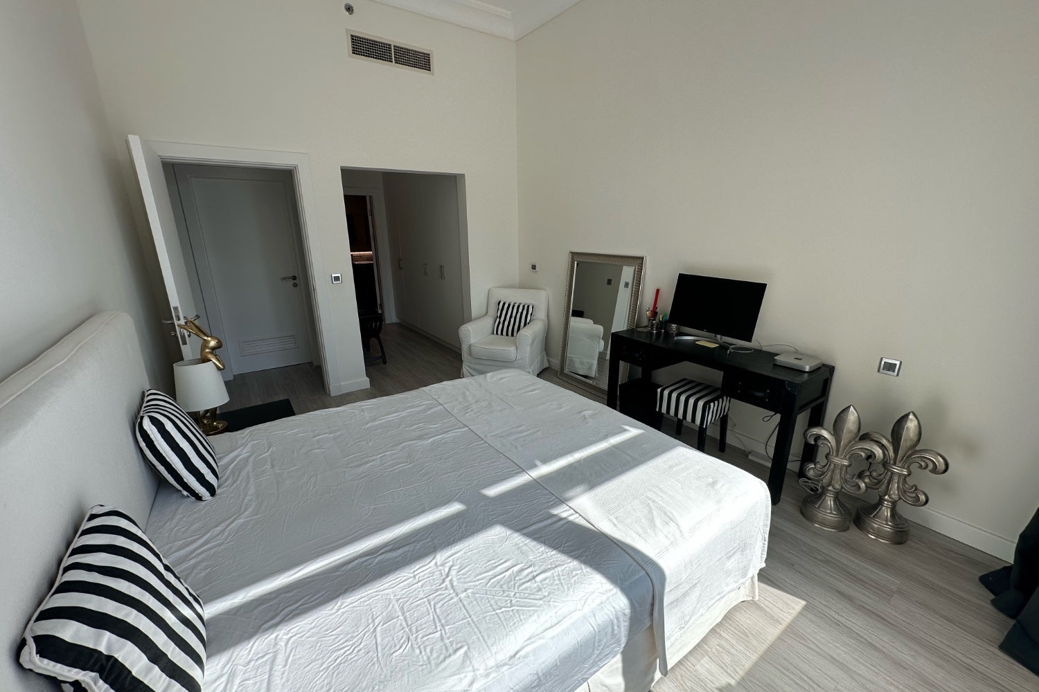 Das Apartment verfügt über ein Gäste-WC sowie ein separates Zimmer für Hauspersonal. Beide Schlafzimmer sind mit angeschlossenen Badezimmern ausgestattet und bieten ein hohes Mass an Komfort und Privatsphäre. Das Hauptschlafzimmer verfügt über einen begehbaren Kleiderschrank.